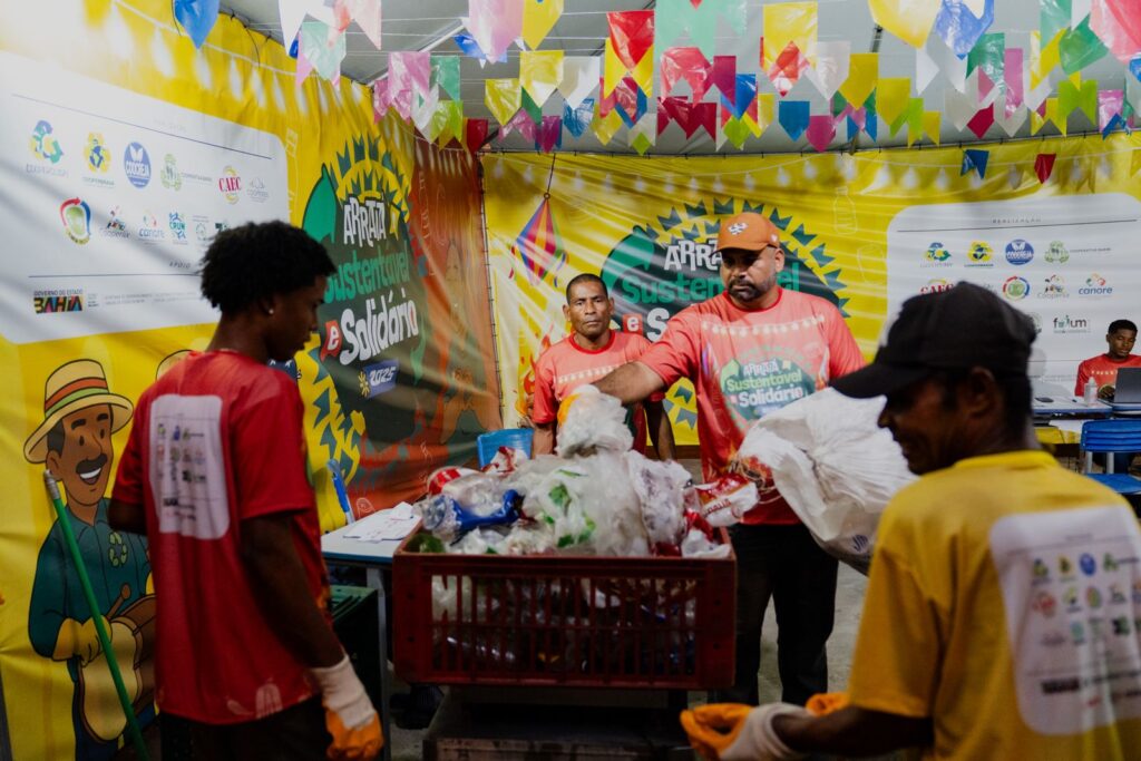 Durante os festejos juninos na Bahia, a coleta seletiva ganha destaque por meio do projeto Ecofolia Solidária, uma ação do Governo do Estado coordenada pela Secretaria do Trabalho, Emprego, Renda e Esporte (Setre). A iniciativa estrutura pontos de apoio à coleta de resíduos recicláveis em 14 municípios, beneficiando 3.566 catadores e catadoras com melhores condições de trabalho e geração de renda.